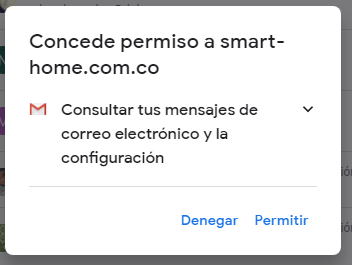 SMART-HOME solo solicita la autorización al usuario de tener acceso de solo lectura a los correos. (https://www.googleapis.com/auth/gmail.readonly)